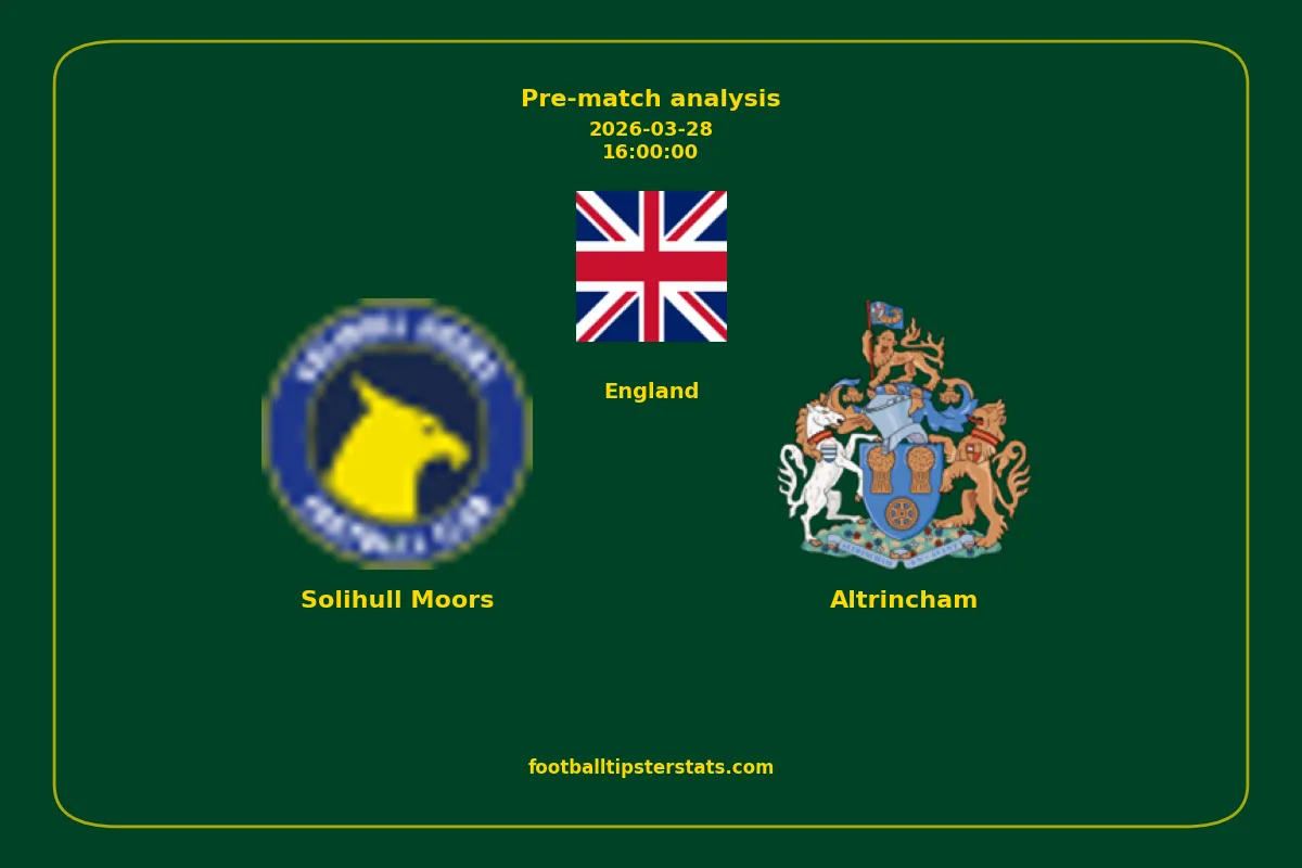 Analyzing the recent performance of Solihull Moors and Altrincham in England, we can derive insights that may inform future match predictions. By examining their individual game histories, head-to-head encounters, and overall trends, we can identify patterns that highlight strengths and weaknesses for both teams. This comprehensive review aims to provide a clearer understanding of their competitive dynamics and potential outcomes in upcoming fixtures.This pre-match analysis covers the upcoming fixture between Solihull Moors and Altrincham. Below you’ll find a detailed breakdown of both teams’ recent form, goal statistics, and head-to-head performance. These insights provide a clear picture of current momentum and can be valuable for match forecasting, tactical evaluation, or betting analysis. Please note that these suggestions are based on historical data and trends. While they provide valuable insights, actual match outcomes can be influenced by various unpredictable factors. Always consider multiple aspects before making any decisions based on these analyses.
