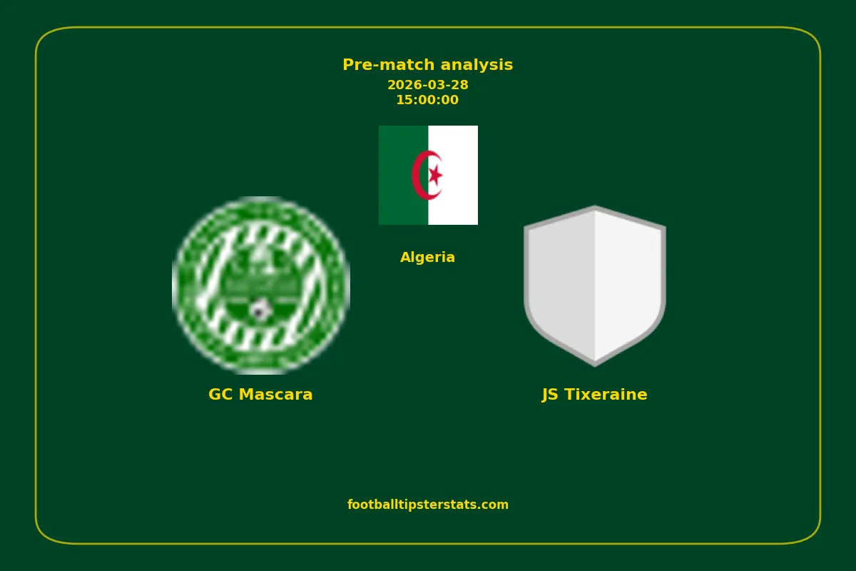 Analyzing the recent performance of GC Mascara and JS Tixeraine in Algeria, we can derive insights that may inform future match predictions. By examining their individual game histories, head-to-head encounters, and overall trends, we can identify patterns that highlight strengths and weaknesses for both teams. This comprehensive review aims to provide a clearer understanding of their competitive dynamics and potential outcomes in upcoming fixtures.This pre-match analysis covers the upcoming fixture between GC Mascara and JS Tixeraine. Below you’ll find a detailed breakdown of both teams’ recent form, goal statistics, and head-to-head performance. These insights provide a clear picture of current momentum and can be valuable for match forecasting, tactical evaluation, or betting analysis. Please note that these suggestions are based on historical data and trends. While they provide valuable insights, actual match outcomes can be influenced by various unpredictable factors. Always consider multiple aspects before making any decisions based on these analyses.