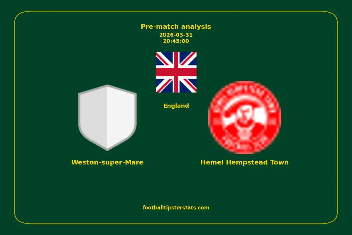 Analyzing the recent performance of Weston-super-Mare and Hemel Hempstead Town in England, we can derive insights that may inform future match predictions. By examining their individual game histories, head-to-head encounters, and overall trends, we can identify patterns that highlight strengths and weaknesses for both teams. This comprehensive review aims to provide a clearer understanding of their competitive dynamics and potential outcomes in upcoming fixtures.This pre-match analysis covers the upcoming fixture between Weston-super-Mare and Hemel Hempstead Town. Below you’ll find a detailed breakdown of both teams’ recent form, goal statistics, and head-to-head performance. These insights provide a clear picture of current momentum and can be valuable for match forecasting, tactical evaluation, or betting analysis. Please note that these suggestions are based on historical data and trends. While they provide valuable insights, actual match outcomes can be influenced by various unpredictable factors. Always consider multiple aspects before making any decisions based on these analyses.