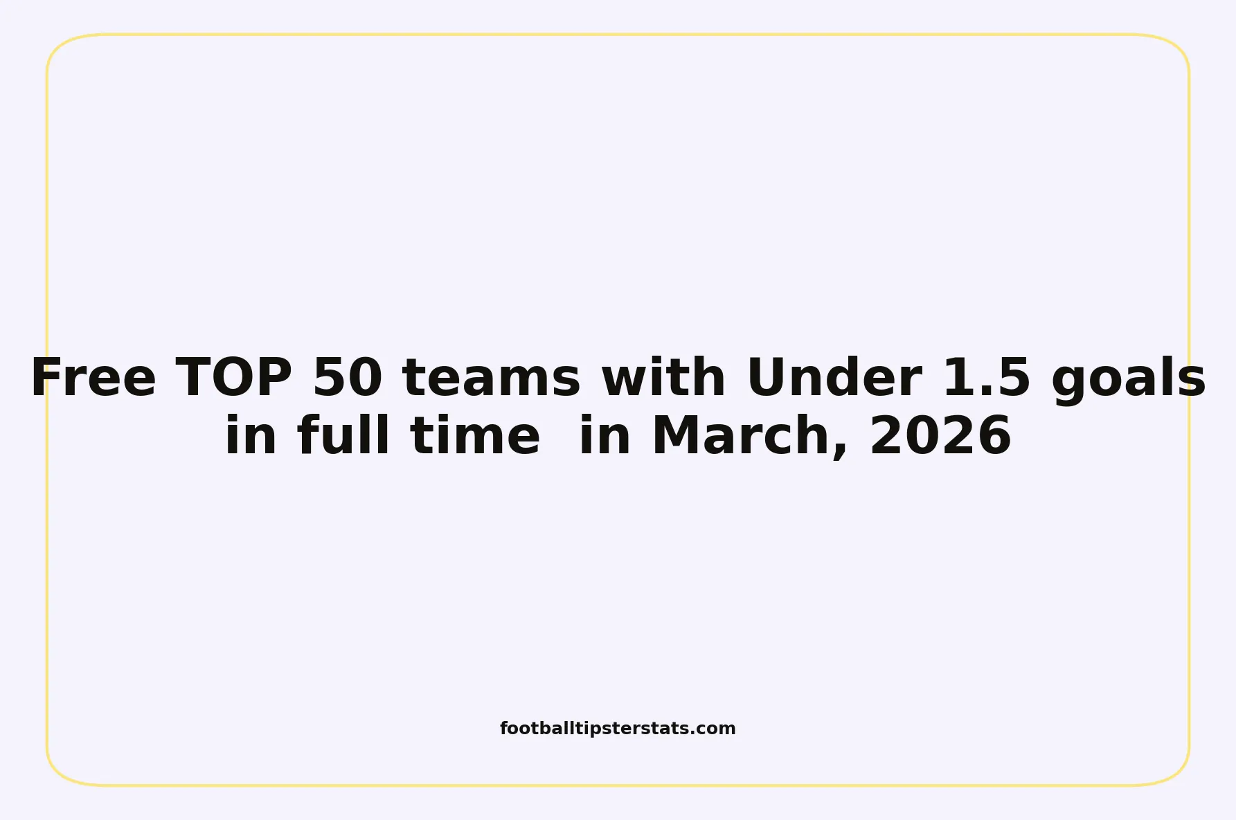Based on the analysis of hundreds of matches played in March 2026, we have identified the 50 teams that are statistically the most reliable for Under 1.5 goals. This overview provides a clear, precise, and data-driven insight into the most stable efficiency trends across the world.