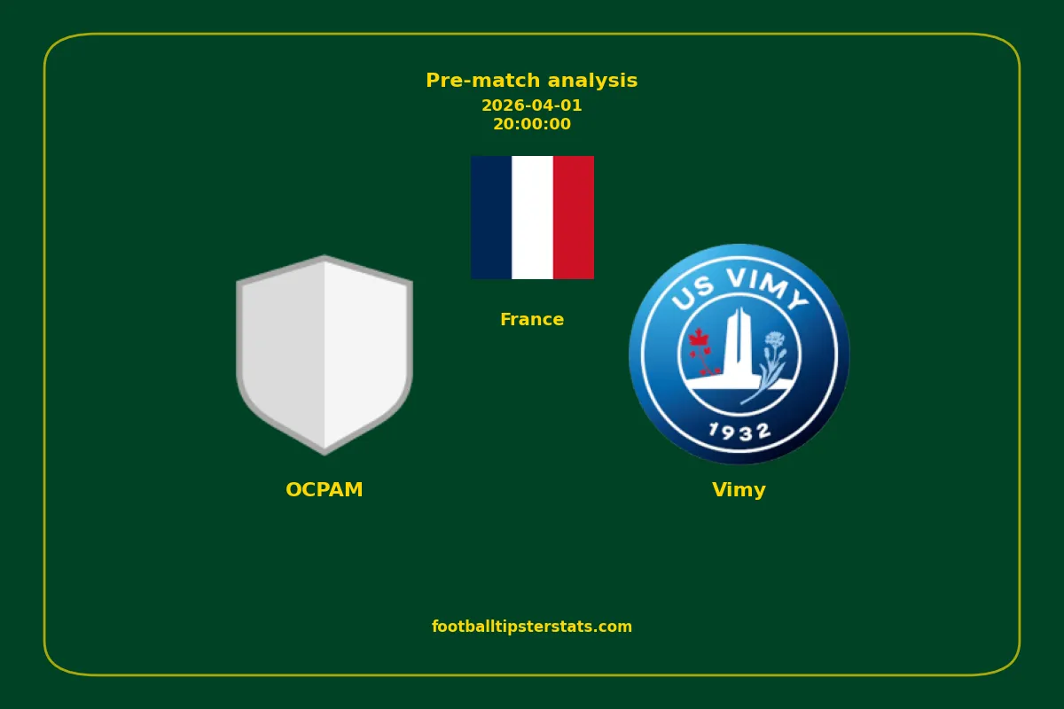 Analyzing the recent performance of OCPAM and Vimy in France, we can derive insights that may inform future match predictions. By examining their individual game histories, head-to-head encounters, and overall trends, we can identify patterns that highlight strengths and weaknesses for both teams. This comprehensive review aims to provide a clearer understanding of their competitive dynamics and potential outcomes in upcoming fixtures.This pre-match analysis covers the upcoming fixture between OCPAM and Vimy. Below you’ll find a detailed breakdown of both teams’ recent form, goal statistics, and head-to-head performance. These insights provide a clear picture of current momentum and can be valuable for match forecasting, tactical evaluation, or betting analysis. Please note that these suggestions are based on historical data and trends. While they provide valuable insights, actual match outcomes can be influenced by various unpredictable factors. Always consider multiple aspects before making any decisions based on these analyses.