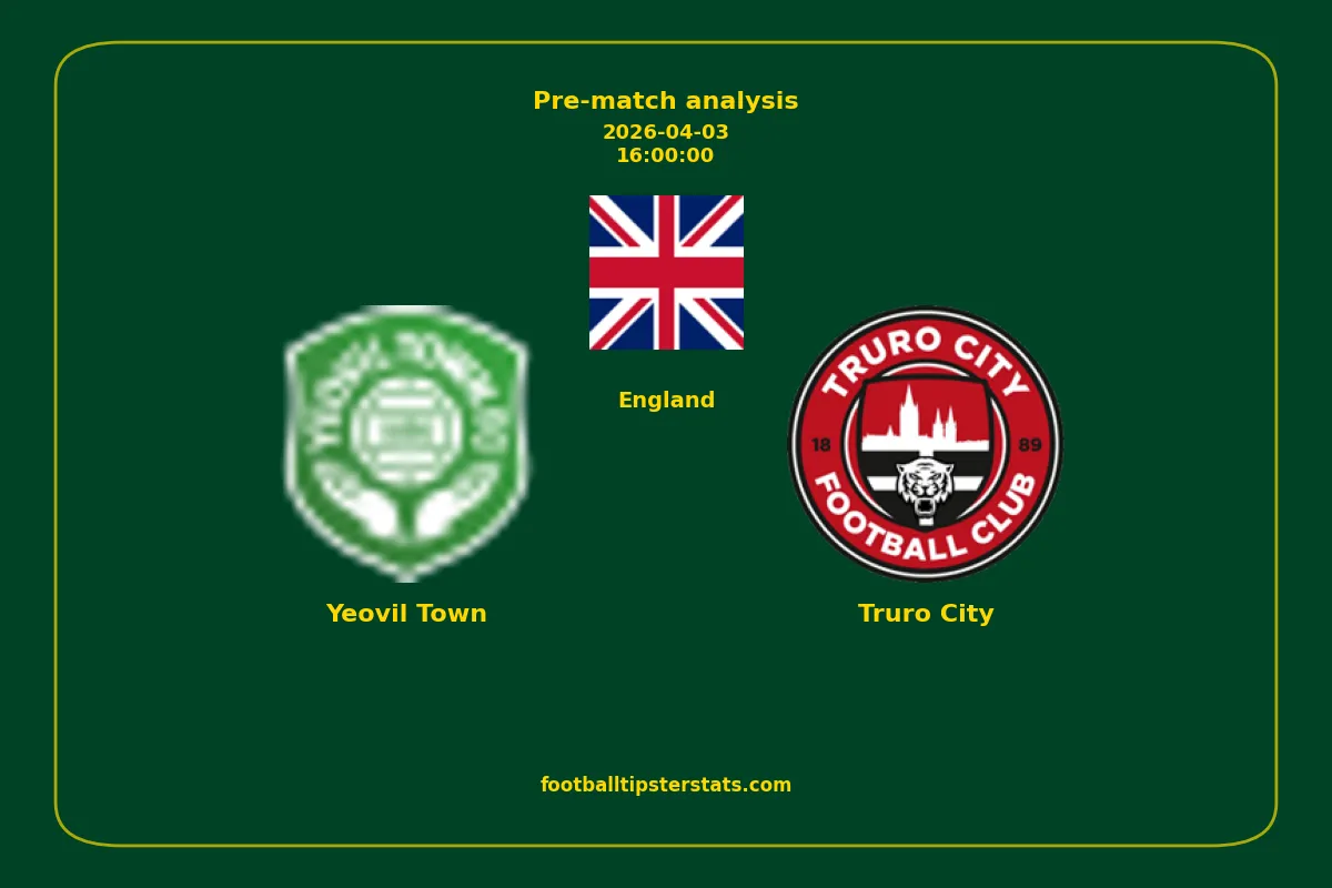 Analyzing the recent performance of Yeovil Town and Truro City in England, we can derive insights that may inform future match predictions. By examining their individual game histories, head-to-head encounters, and overall trends, we can identify patterns that highlight strengths and weaknesses for both teams. This comprehensive review aims to provide a clearer understanding of their competitive dynamics and potential outcomes in upcoming fixtures.This pre-match analysis covers the upcoming fixture between Yeovil Town and Truro City. Below you’ll find a detailed breakdown of both teams’ recent form, goal statistics, and head-to-head performance. These insights provide a clear picture of current momentum and can be valuable for match forecasting, tactical evaluation, or betting analysis. Please note that these suggestions are based on historical data and trends. While they provide valuable insights, actual match outcomes can be influenced by various unpredictable factors. Always consider multiple aspects before making any decisions based on these analyses.