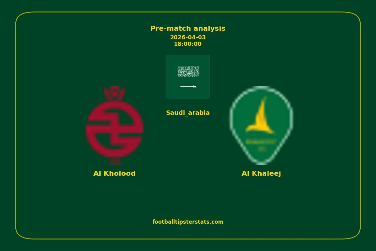 Analyzing the recent performance of Al Kholood and Al Khaleej in Saudi_arabia, we can derive insights that may inform future match predictions. By examining their individual game histories, head-to-head encounters, and overall trends, we can identify patterns that highlight strengths and weaknesses for both teams. This comprehensive review aims to provide a clearer understanding of their competitive dynamics and potential outcomes in upcoming fixtures.This pre-match analysis covers the upcoming fixture between Al Kholood and Al Khaleej. Below you’ll find a detailed breakdown of both teams’ recent form, goal statistics, and head-to-head performance. These insights provide a clear picture of current momentum and can be valuable for match forecasting, tactical evaluation, or betting analysis. Please note that these suggestions are based on historical data and trends. While they provide valuable insights, actual match outcomes can be influenced by various unpredictable factors. Always consider multiple aspects before making any decisions based on these analyses.