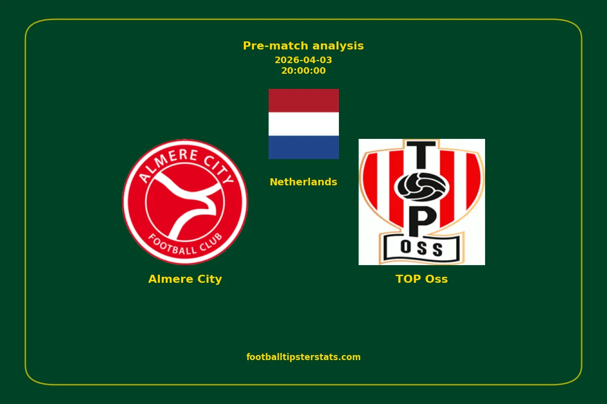 Analyzing the recent performance of Almere City and TOP Oss in Netherlands, we can derive insights that may inform future match predictions. By examining their individual game histories, head-to-head encounters, and overall trends, we can identify patterns that highlight strengths and weaknesses for both teams. This comprehensive review aims to provide a clearer understanding of their competitive dynamics and potential outcomes in upcoming fixtures.This pre-match analysis covers the upcoming fixture between Almere City and TOP Oss. Below you’ll find a detailed breakdown of both teams’ recent form, goal statistics, and head-to-head performance. These insights provide a clear picture of current momentum and can be valuable for match forecasting, tactical evaluation, or betting analysis. Please note that these suggestions are based on historical data and trends. While they provide valuable insights, actual match outcomes can be influenced by various unpredictable factors. Always consider multiple aspects before making any decisions based on these analyses.