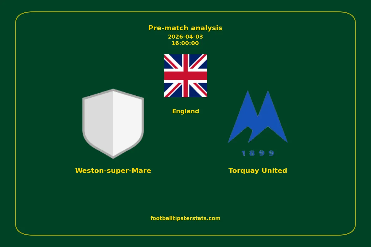Analyzing the recent performance of Weston-super-Mare and Torquay United in England, we can derive insights that may inform future match predictions. By examining their individual game histories, head-to-head encounters, and overall trends, we can identify patterns that highlight strengths and weaknesses for both teams. This comprehensive review aims to provide a clearer understanding of their competitive dynamics and potential outcomes in upcoming fixtures.This pre-match analysis covers the upcoming fixture between Weston-super-Mare and Torquay United. Below you’ll find a detailed breakdown of both teams’ recent form, goal statistics, and head-to-head performance. These insights provide a clear picture of current momentum and can be valuable for match forecasting, tactical evaluation, or betting analysis. Please note that these suggestions are based on historical data and trends. While they provide valuable insights, actual match outcomes can be influenced by various unpredictable factors. Always consider multiple aspects before making any decisions based on these analyses.