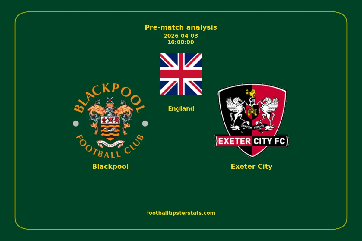 Analyzing the recent performance of Blackpool and Exeter City in England, we can derive insights that may inform future match predictions. By examining their individual game histories, head-to-head encounters, and overall trends, we can identify patterns that highlight strengths and weaknesses for both teams. This comprehensive review aims to provide a clearer understanding of their competitive dynamics and potential outcomes in upcoming fixtures.This pre-match analysis covers the upcoming fixture between Blackpool and Exeter City. Below you’ll find a detailed breakdown of both teams’ recent form, goal statistics, and head-to-head performance. These insights provide a clear picture of current momentum and can be valuable for match forecasting, tactical evaluation, or betting analysis. Please note that these suggestions are based on historical data and trends. While they provide valuable insights, actual match outcomes can be influenced by various unpredictable factors. Always consider multiple aspects before making any decisions based on these analyses.