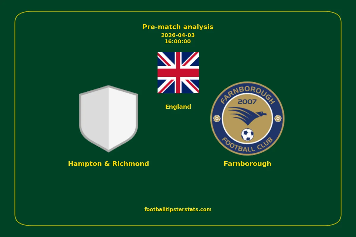 Analyzing the recent performance of Hampton & Richmond and Farnborough in England, we can derive insights that may inform future match predictions. By examining their individual game histories, head-to-head encounters, and overall trends, we can identify patterns that highlight strengths and weaknesses for both teams. This comprehensive review aims to provide a clearer understanding of their competitive dynamics and potential outcomes in upcoming fixtures.This pre-match analysis covers the upcoming fixture between Hampton & Richmond and Farnborough. Below you’ll find a detailed breakdown of both teams’ recent form, goal statistics, and head-to-head performance. These insights provide a clear picture of current momentum and can be valuable for match forecasting, tactical evaluation, or betting analysis. Please note that these suggestions are based on historical data and trends. While they provide valuable insights, actual match outcomes can be influenced by various unpredictable factors. Always consider multiple aspects before making any decisions based on these analyses.