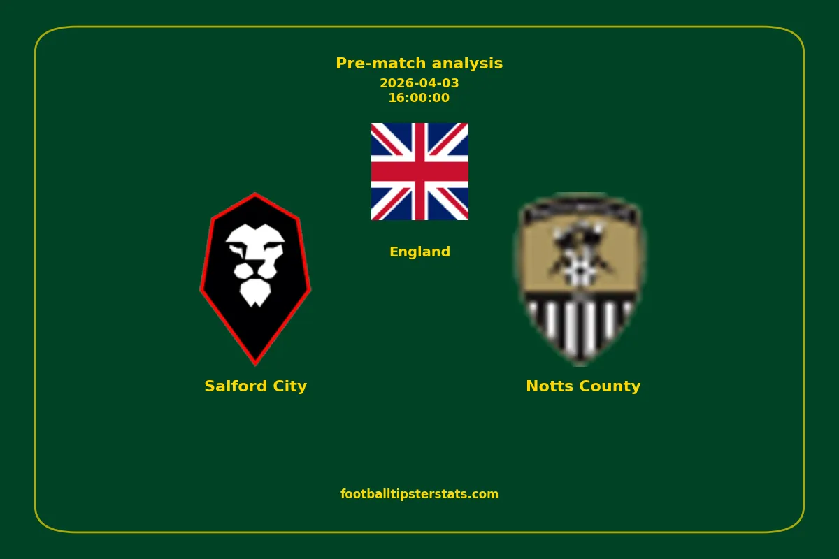 Analyzing the recent performance of Salford City and Notts County in England, we can derive insights that may inform future match predictions. By examining their individual game histories, head-to-head encounters, and overall trends, we can identify patterns that highlight strengths and weaknesses for both teams. This comprehensive review aims to provide a clearer understanding of their competitive dynamics and potential outcomes in upcoming fixtures.This pre-match analysis covers the upcoming fixture between Salford City and Notts County. Below you’ll find a detailed breakdown of both teams’ recent form, goal statistics, and head-to-head performance. These insights provide a clear picture of current momentum and can be valuable for match forecasting, tactical evaluation, or betting analysis. Please note that these suggestions are based on historical data and trends. While they provide valuable insights, actual match outcomes can be influenced by various unpredictable factors. Always consider multiple aspects before making any decisions based on these analyses.