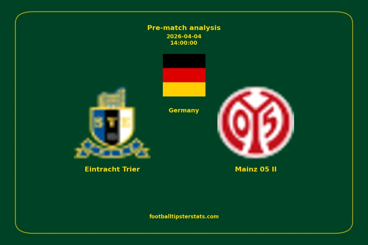 Analyzing the recent performance of Eintracht Trier and Mainz 05 II in Germany, we can derive insights that may inform future match predictions. By examining their individual game histories, head-to-head encounters, and overall trends, we can identify patterns that highlight strengths and weaknesses for both teams. This comprehensive review aims to provide a clearer understanding of their competitive dynamics and potential outcomes in upcoming fixtures.This pre-match analysis covers the upcoming fixture between Eintracht Trier and Mainz 05 II. Below you’ll find a detailed breakdown of both teams’ recent form, goal statistics, and head-to-head performance. These insights provide a clear picture of current momentum and can be valuable for match forecasting, tactical evaluation, or betting analysis. Please note that these suggestions are based on historical data and trends. While they provide valuable insights, actual match outcomes can be influenced by various unpredictable factors. Always consider multiple aspects before making any decisions based on these analyses.
