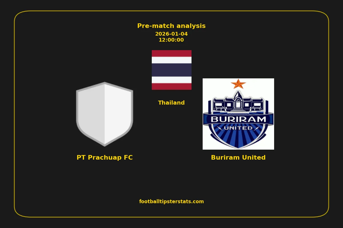 Analyzing the recent performance of PT Prachuap FC and Buriram United in Thailand, we can derive insights that may inform future match predictions. By examining their individual game histories, head-to-head encounters, and overall trends, we can identify patterns that highlight strengths and weaknesses for both teams. This comprehensive review aims to provide a clearer understanding of their competitive dynamics and potential outcomes in upcoming fixtures.This pre-match analysis covers the upcoming fixture between PT Prachuap FC and Buriram United. Below you’ll find a detailed breakdown of both teams’ recent form, goal statistics, and head-to-head performance. These insights provide a clear picture of current momentum and can be valuable for match forecasting, tactical evaluation, or betting analysis. Please note that these suggestions are based on historical data and trends. While they provide valuable insights, actual match outcomes can be influenced by various unpredictable factors. Always consider multiple aspects before making any decisions based on these analyses.