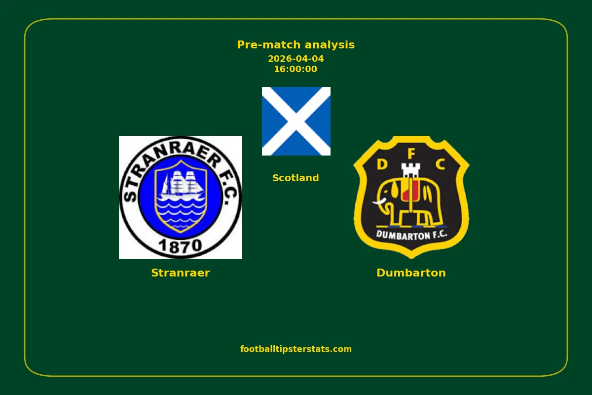 Analyzing the recent performance of Stranraer and Dumbarton in Scotland, we can derive insights that may inform future match predictions. By examining their individual game histories, head-to-head encounters, and overall trends, we can identify patterns that highlight strengths and weaknesses for both teams. This comprehensive review aims to provide a clearer understanding of their competitive dynamics and potential outcomes in upcoming fixtures.This pre-match analysis covers the upcoming fixture between Stranraer and Dumbarton. Below you’ll find a detailed breakdown of both teams’ recent form, goal statistics, and head-to-head performance. These insights provide a clear picture of current momentum and can be valuable for match forecasting, tactical evaluation, or betting analysis. Please note that these suggestions are based on historical data and trends. While they provide valuable insights, actual match outcomes can be influenced by various unpredictable factors. Always consider multiple aspects before making any decisions based on these analyses.