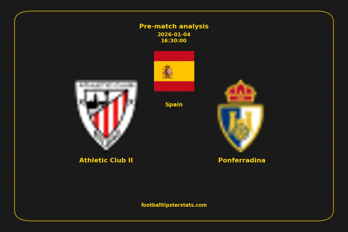 Analyzing the recent performance of Athletic Club II and Ponferradina in Spain, we can derive insights that may inform future match predictions. By examining their individual game histories, head-to-head encounters, and overall trends, we can identify patterns that highlight strengths and weaknesses for both teams. This comprehensive review aims to provide a clearer understanding of their competitive dynamics and potential outcomes in upcoming fixtures.This pre-match analysis covers the upcoming fixture between Athletic Club II and Ponferradina. Below you’ll find a detailed breakdown of both teams’ recent form, goal statistics, and head-to-head performance. These insights provide a clear picture of current momentum and can be valuable for match forecasting, tactical evaluation, or betting analysis. Please note that these suggestions are based on historical data and trends. While they provide valuable insights, actual match outcomes can be influenced by various unpredictable factors. Always consider multiple aspects before making any decisions based on these analyses.