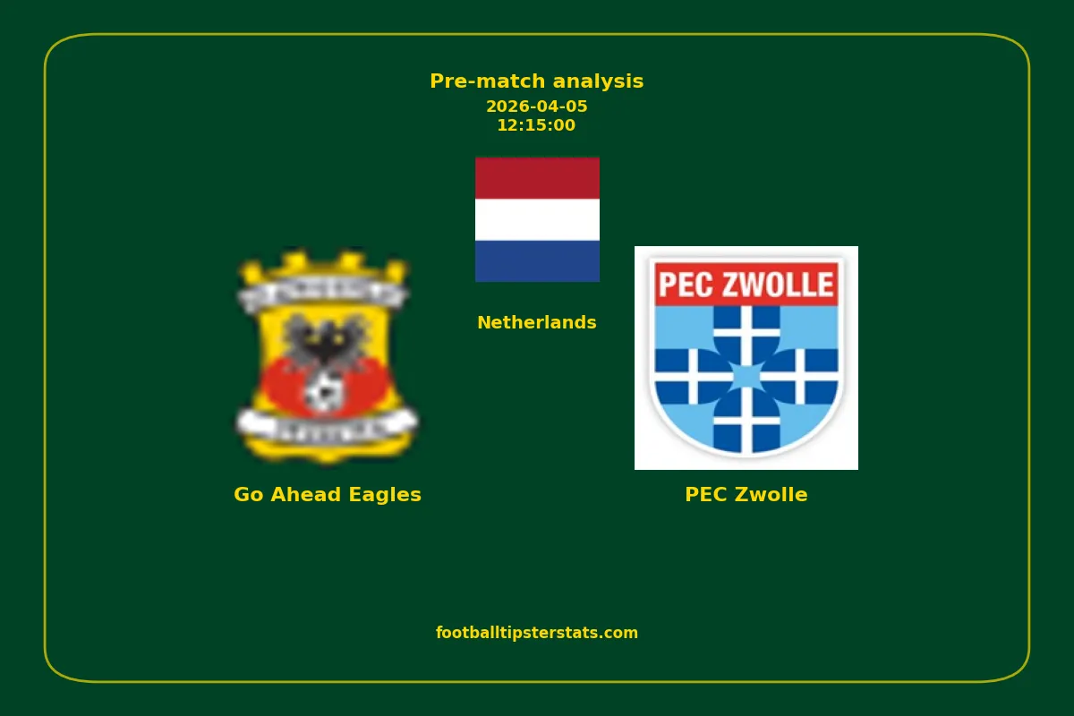 Analyzing the recent performance of Go Ahead Eagles and PEC Zwolle in Netherlands, we can derive insights that may inform future match predictions. By examining their individual game histories, head-to-head encounters, and overall trends, we can identify patterns that highlight strengths and weaknesses for both teams. This comprehensive review aims to provide a clearer understanding of their competitive dynamics and potential outcomes in upcoming fixtures.This pre-match analysis covers the upcoming fixture between Go Ahead Eagles and PEC Zwolle. Below you’ll find a detailed breakdown of both teams’ recent form, goal statistics, and head-to-head performance. These insights provide a clear picture of current momentum and can be valuable for match forecasting, tactical evaluation, or betting analysis. Please note that these suggestions are based on historical data and trends. While they provide valuable insights, actual match outcomes can be influenced by various unpredictable factors. Always consider multiple aspects before making any decisions based on these analyses.