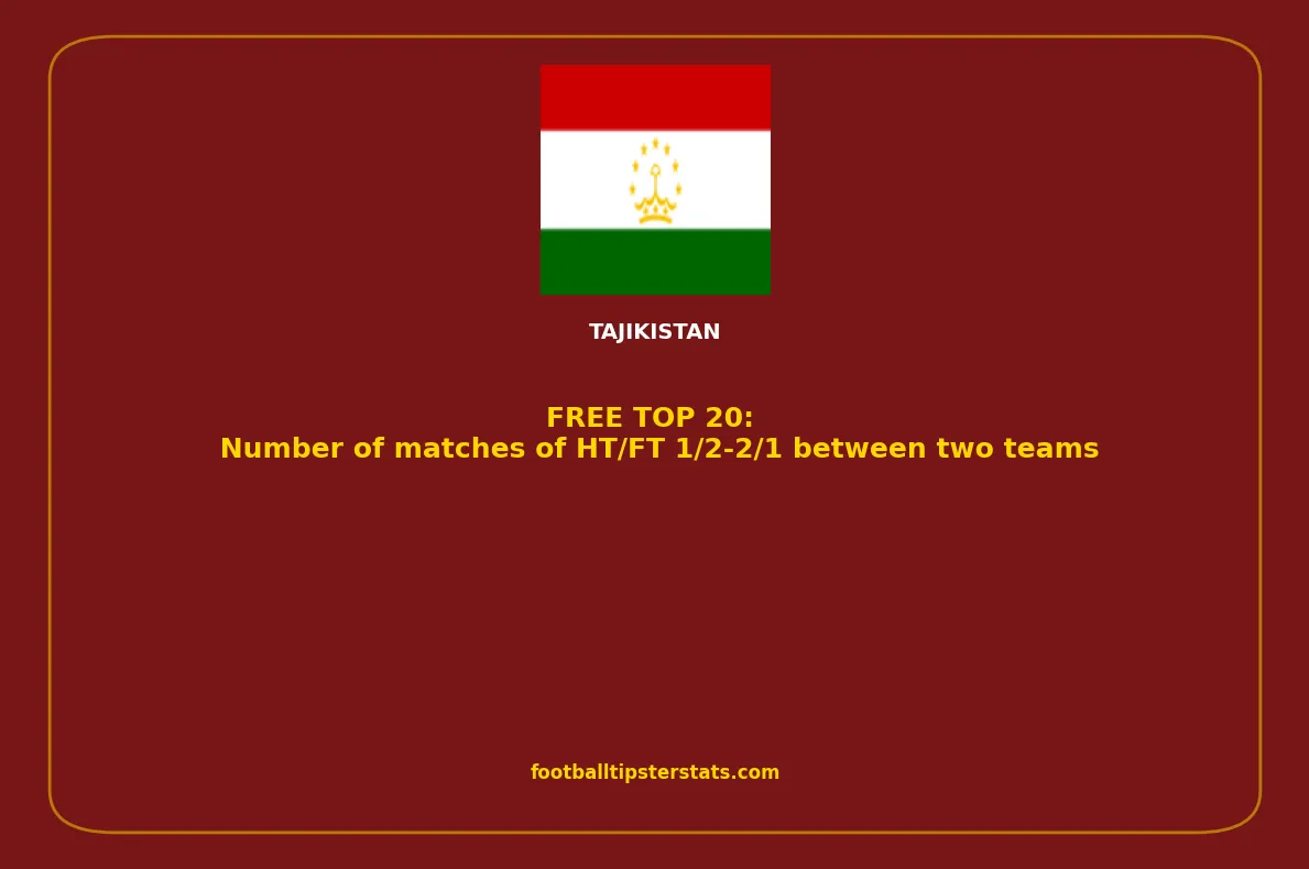 Here is a detailed overview of the teams with the highest number of matches of ht/ft 1/2-2/1 between two teams in Tajikistan. This list highlights clubs that consistently produce high-scoring games, based on recent statistical performance. Whether you're analyzing trends, preparing betting strategies, or simply exploring offensive team profiles, these numbers offer a clear insight into which teams generate the most goal-rich matches.