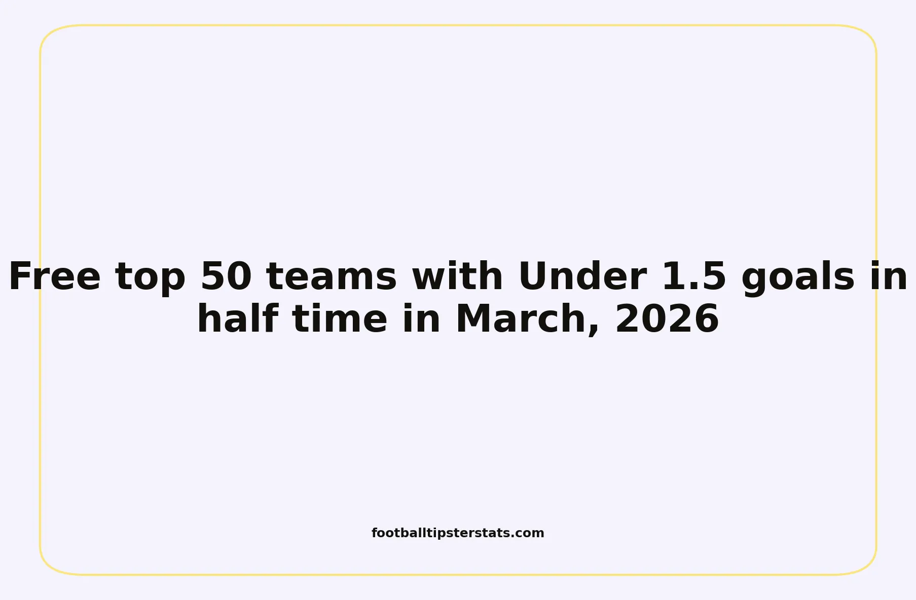 Based on the analysis of hundreds of matches played in March 2026, we have identified the 50 teams that are statistically the most reliable for Under 1.5 goals in half time. This overview provides a clear, precise, and data-driven insight into the most stable efficiency trends across the world.