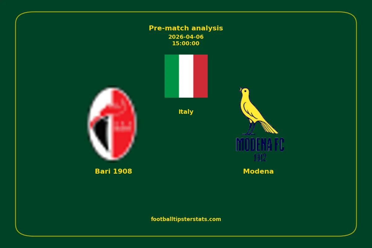 Analyzing the recent performance of Bari 1908 and Modena in Italy, we can derive insights that may inform future match predictions. By examining their individual game histories, head-to-head encounters, and overall trends, we can identify patterns that highlight strengths and weaknesses for both teams. This comprehensive review aims to provide a clearer understanding of their competitive dynamics and potential outcomes in upcoming fixtures.This pre-match analysis covers the upcoming fixture between Bari 1908 and Modena. Below you’ll find a detailed breakdown of both teams’ recent form, goal statistics, and head-to-head performance. These insights provide a clear picture of current momentum and can be valuable for match forecasting, tactical evaluation, or betting analysis. Please note that these suggestions are based on historical data and trends. While they provide valuable insights, actual match outcomes can be influenced by various unpredictable factors. Always consider multiple aspects before making any decisions based on these analyses.