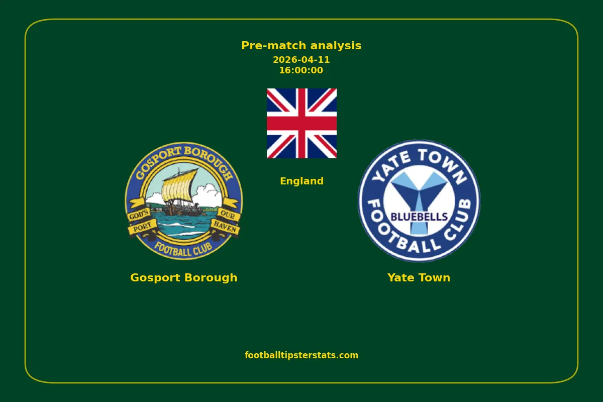 Analyzing the recent performance of Gosport Borough and Yate Town in England, we can derive insights that may inform future match predictions. By examining their individual game histories, head-to-head encounters, and overall trends, we can identify patterns that highlight strengths and weaknesses for both teams. This comprehensive review aims to provide a clearer understanding of their competitive dynamics and potential outcomes in upcoming fixtures.This pre-match analysis covers the upcoming fixture between Gosport Borough and Yate Town. Below you’ll find a detailed breakdown of both teams’ recent form, goal statistics, and head-to-head performance. These insights provide a clear picture of current momentum and can be valuable for match forecasting, tactical evaluation, or betting analysis. Please note that these suggestions are based on historical data and trends. While they provide valuable insights, actual match outcomes can be influenced by various unpredictable factors. Always consider multiple aspects before making any decisions based on these analyses.
