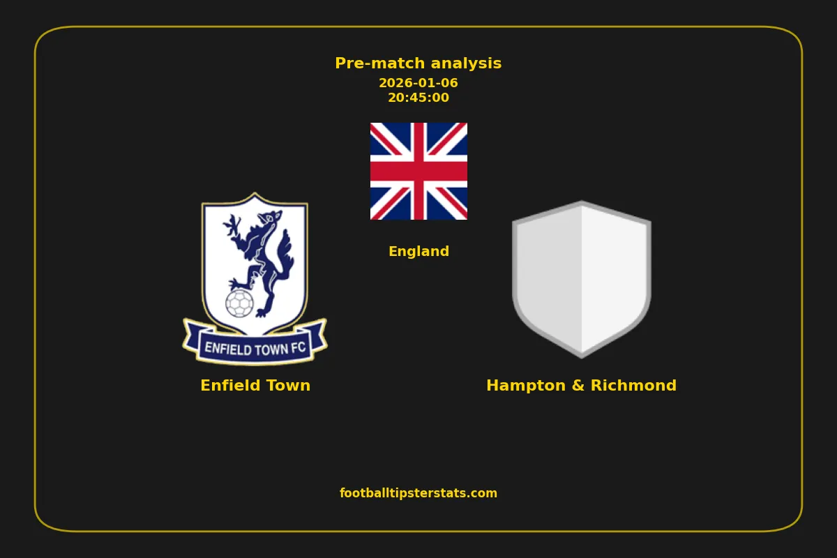 Analyzing the recent performance of Enfield Town and Hampton & Richmond in England, we can derive insights that may inform future match predictions. By examining their individual game histories, head-to-head encounters, and overall trends, we can identify patterns that highlight strengths and weaknesses for both teams. This comprehensive review aims to provide a clearer understanding of their competitive dynamics and potential outcomes in upcoming fixtures.This pre-match analysis covers the upcoming fixture between Enfield Town and Hampton & Richmond. Below you’ll find a detailed breakdown of both teams’ recent form, goal statistics, and head-to-head performance. These insights provide a clear picture of current momentum and can be valuable for match forecasting, tactical evaluation, or betting analysis. Please note that these suggestions are based on historical data and trends. While they provide valuable insights, actual match outcomes can be influenced by various unpredictable factors. Always consider multiple aspects before making any decisions based on these analyses.