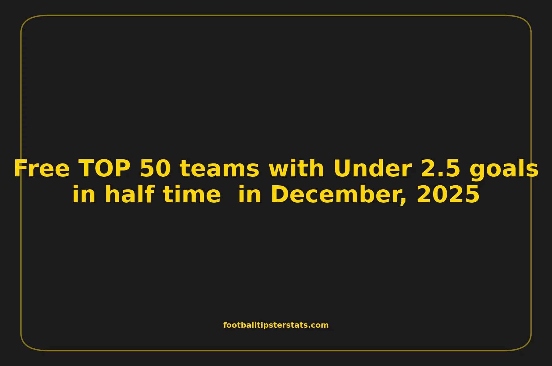Based on the analysis of hundreds of matches played in December 2025, we have identified the 50 teams that are statistically the most reliable for Under 2.5 goals in half time. This overview provides a clear, precise, and data-driven insight into the most stable efficiency trends across the world.