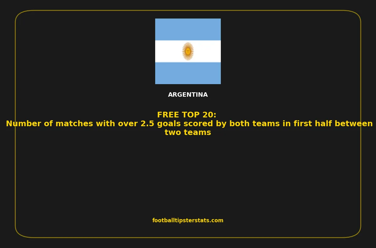Here is a detailed overview of the teams with the highest number of matches with over 2.5 goals scored by both teams in first half between two teams in Argentina. This list highlights clubs that consistently produce high-scoring games, based on recent statistical performance. Whether you're analyzing trends, preparing betting strategies, or simply exploring offensive team profiles, these numbers offer a clear insight into which teams generate the most goal-rich matches.