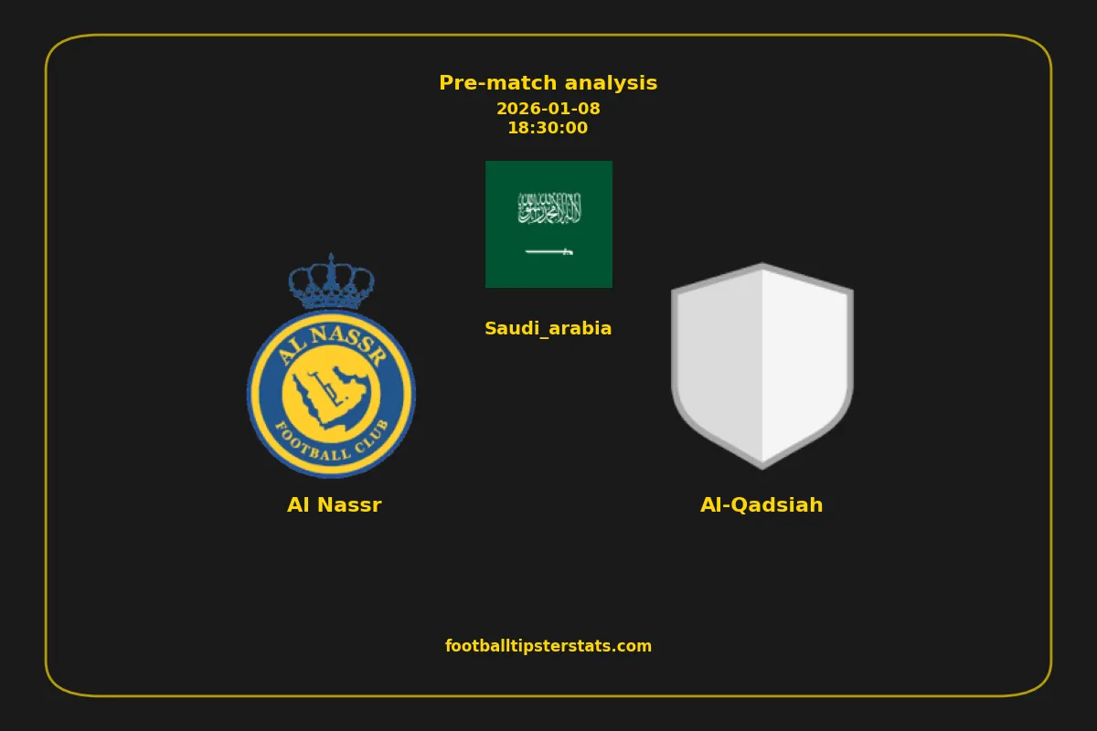Analyzing the recent performance of Al Nassr and Al-Qadsiah in Saudi_arabia, we can derive insights that may inform future match predictions. By examining their individual game histories, head-to-head encounters, and overall trends, we can identify patterns that highlight strengths and weaknesses for both teams. This comprehensive review aims to provide a clearer understanding of their competitive dynamics and potential outcomes in upcoming fixtures.This pre-match analysis covers the upcoming fixture between Al Nassr and Al-Qadsiah. Below you’ll find a detailed breakdown of both teams’ recent form, goal statistics, and head-to-head performance. These insights provide a clear picture of current momentum and can be valuable for match forecasting, tactical evaluation, or betting analysis. Please note that these suggestions are based on historical data and trends. While they provide valuable insights, actual match outcomes can be influenced by various unpredictable factors. Always consider multiple aspects before making any decisions based on these analyses.