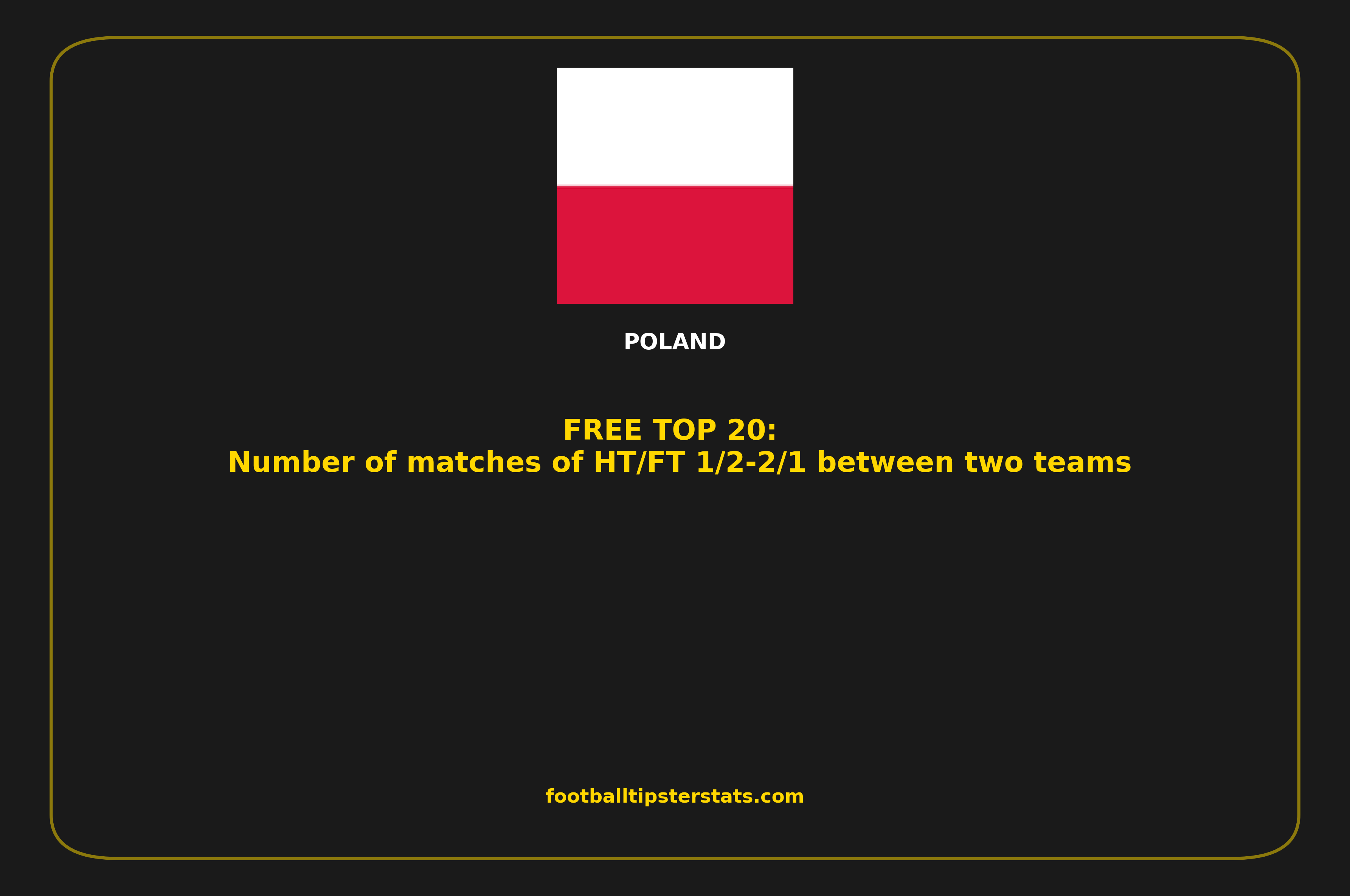 Here is a detailed overview of the teams with the highest number of matches of ht/ft 1/2-2/1 between two teams in Poland. This list highlights clubs that consistently produce high-scoring games, based on recent statistical performance. Whether you're analyzing trends, preparing betting strategies, or simply exploring offensive team profiles, these numbers offer a clear insight into which teams generate the most goal-rich matches.