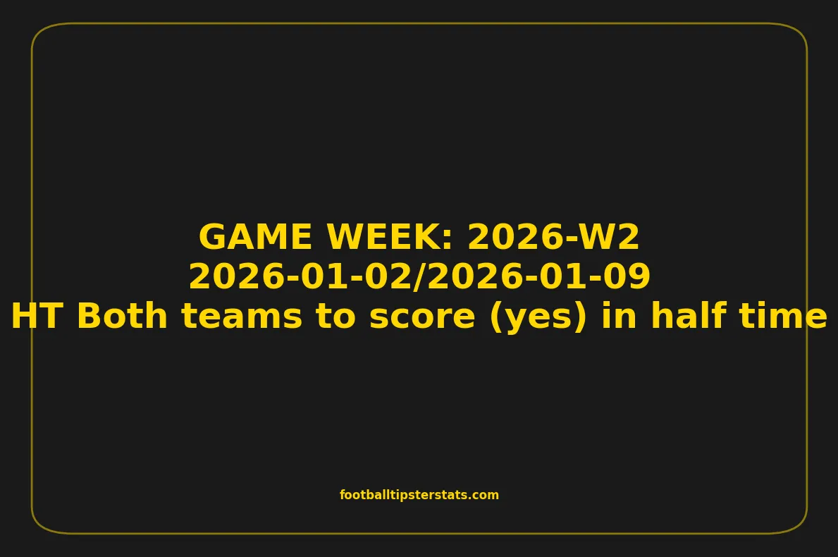 This game week analysis covers fixtures from GAME WEEK 2, January 02-09, 2026, with a strong statistical focus on HT Both teams to score (yes) in half time.
