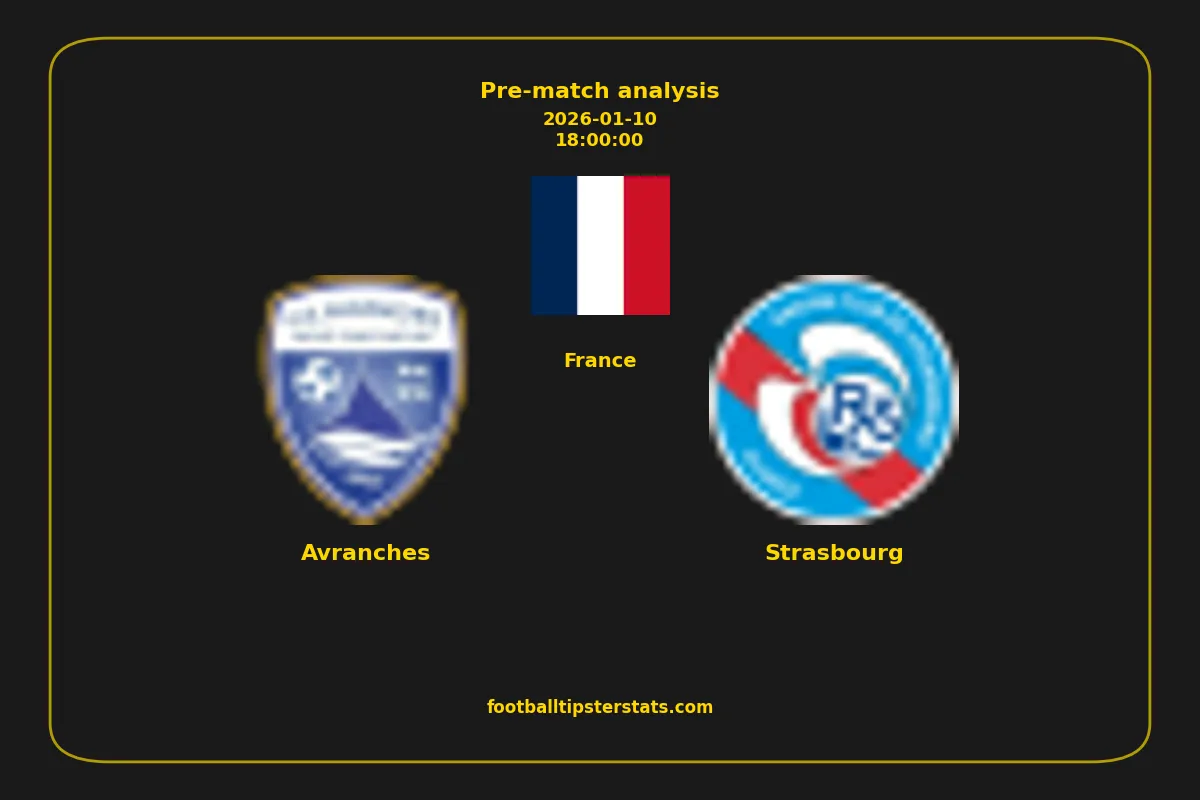 Analyzing the recent performance of Avranches and Strasbourg in France, we can derive insights that may inform future match predictions. By examining their individual game histories, head-to-head encounters, and overall trends, we can identify patterns that highlight strengths and weaknesses for both teams. This comprehensive review aims to provide a clearer understanding of their competitive dynamics and potential outcomes in upcoming fixtures.This pre-match analysis covers the upcoming fixture between Avranches and Strasbourg. Below you’ll find a detailed breakdown of both teams’ recent form, goal statistics, and head-to-head performance. These insights provide a clear picture of current momentum and can be valuable for match forecasting, tactical evaluation, or betting analysis. Please note that these suggestions are based on historical data and trends. While they provide valuable insights, actual match outcomes can be influenced by various unpredictable factors. Always consider multiple aspects before making any decisions based on these analyses.