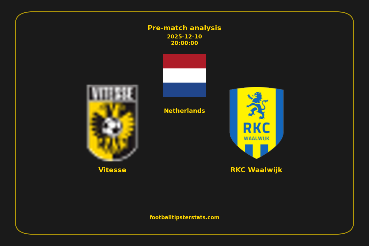 Analyzing the recent performance of Vitesse and RKC Waalwijk in Netherlands, we can derive insights that may inform future match predictions. By examining their individual game histories, head-to-head encounters, and overall trends, we can identify patterns that highlight strengths and weaknesses for both teams. This comprehensive review aims to provide a clearer understanding of their competitive dynamics and potential outcomes in upcoming fixtures.This pre-match analysis covers the upcoming fixture between Vitesse and RKC Waalwijk. Below you’ll find a detailed breakdown of both teams’ recent form, goal statistics, and head-to-head performance. These insights provide a clear picture of current momentum and can be valuable for match forecasting, tactical evaluation, or betting analysis. Please note that these suggestions are based on historical data and trends. While they provide valuable insights, actual match outcomes can be influenced by various unpredictable factors. Always consider multiple aspects before making any decisions based on these analyses.