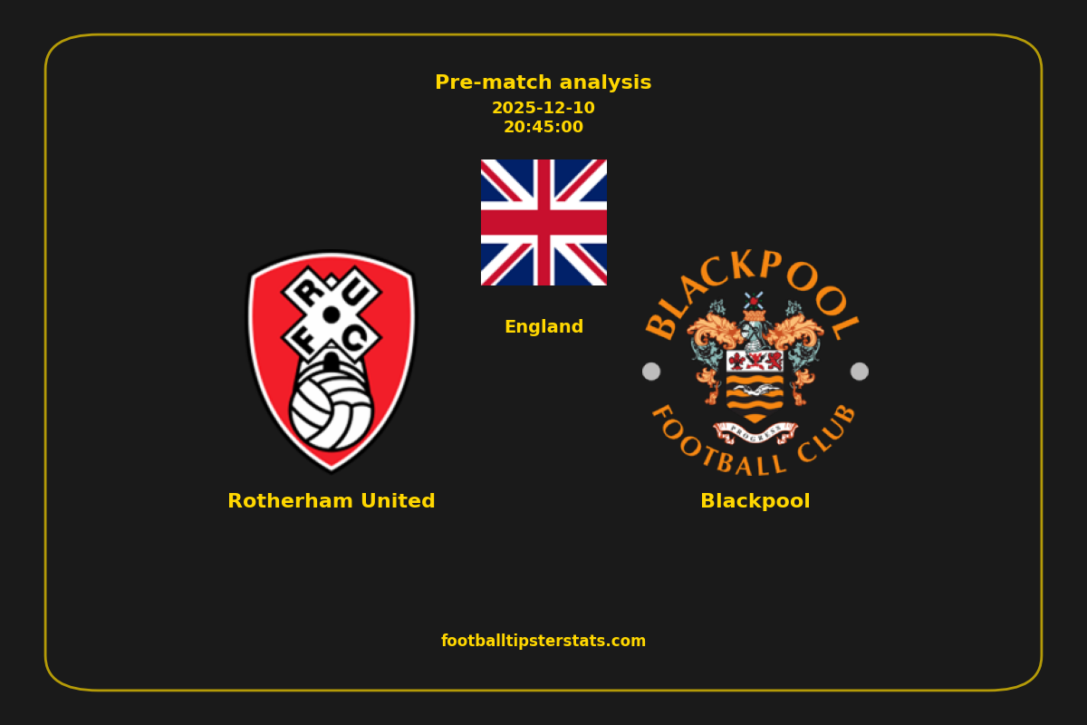 Analyzing the recent performance of Rotherham United and Blackpool in England, we can derive insights that may inform future match predictions. By examining their individual game histories, head-to-head encounters, and overall trends, we can identify patterns that highlight strengths and weaknesses for both teams. This comprehensive review aims to provide a clearer understanding of their competitive dynamics and potential outcomes in upcoming fixtures.This pre-match analysis covers the upcoming fixture between Rotherham United and Blackpool. Below you’ll find a detailed breakdown of both teams’ recent form, goal statistics, and head-to-head performance. These insights provide a clear picture of current momentum and can be valuable for match forecasting, tactical evaluation, or betting analysis. Please note that these suggestions are based on historical data and trends. While they provide valuable insights, actual match outcomes can be influenced by various unpredictable factors. Always consider multiple aspects before making any decisions based on these analyses.