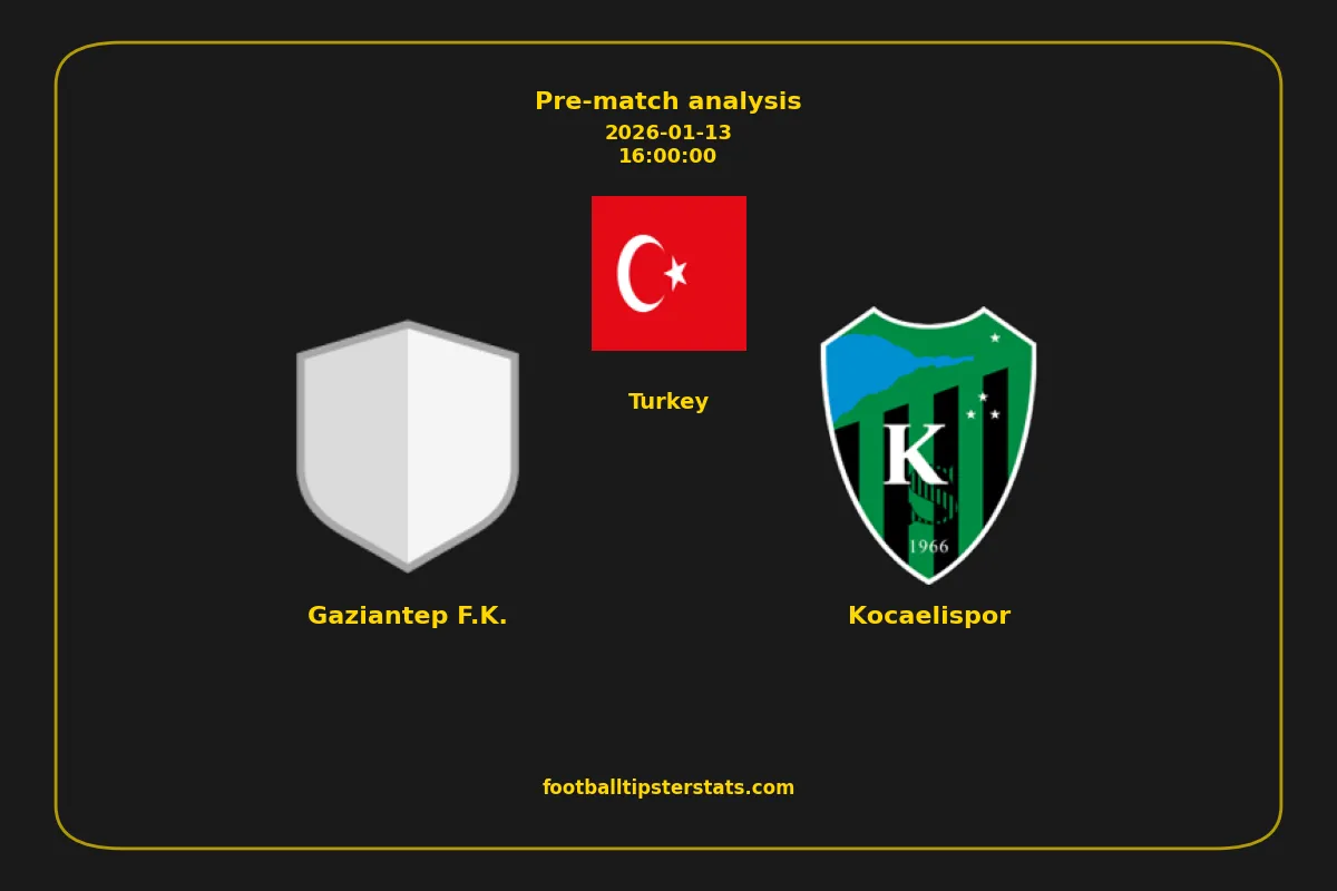Analyzing the recent performance of Gaziantep F.K. and Kocaelispor in Turkey, we can derive insights that may inform future match predictions. By examining their individual game histories, head-to-head encounters, and overall trends, we can identify patterns that highlight strengths and weaknesses for both teams. This comprehensive review aims to provide a clearer understanding of their competitive dynamics and potential outcomes in upcoming fixtures.This pre-match analysis covers the upcoming fixture between Gaziantep F.K. and Kocaelispor. Below you’ll find a detailed breakdown of both teams’ recent form, goal statistics, and head-to-head performance. These insights provide a clear picture of current momentum and can be valuable for match forecasting, tactical evaluation, or betting analysis. Please note that these suggestions are based on historical data and trends. While they provide valuable insights, actual match outcomes can be influenced by various unpredictable factors. Always consider multiple aspects before making any decisions based on these analyses.