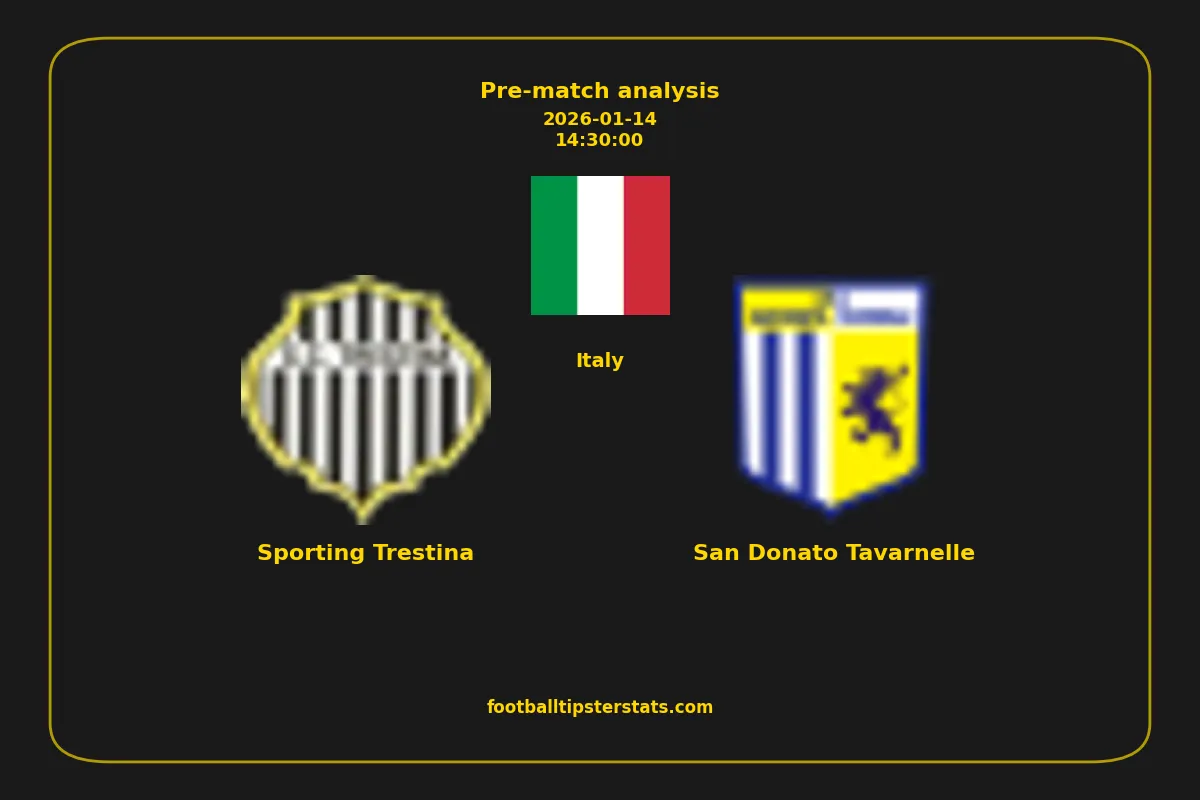Analyzing the recent performance of Sporting Trestina and San Donato Tavarnelle in Italy, we can derive insights that may inform future match predictions. By examining their individual game histories, head-to-head encounters, and overall trends, we can identify patterns that highlight strengths and weaknesses for both teams. This comprehensive review aims to provide a clearer understanding of their competitive dynamics and potential outcomes in upcoming fixtures.This pre-match analysis covers the upcoming fixture between Sporting Trestina and San Donato Tavarnelle. Below you’ll find a detailed breakdown of both teams’ recent form, goal statistics, and head-to-head performance. These insights provide a clear picture of current momentum and can be valuable for match forecasting, tactical evaluation, or betting analysis. Please note that these suggestions are based on historical data and trends. While they provide valuable insights, actual match outcomes can be influenced by various unpredictable factors. Always consider multiple aspects before making any decisions based on these analyses.