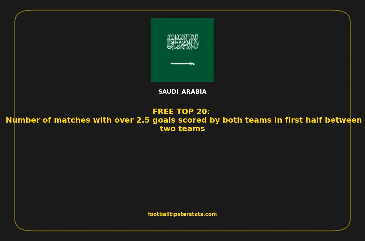 Here is a detailed overview of the teams with the highest number of matches with over 2.5 goals scored by both teams in first half between two teams in Saudi Arabia. This list highlights clubs that consistently produce high-scoring games, based on recent statistical performance. Whether you're analyzing trends, preparing betting strategies, or simply exploring offensive team profiles, these numbers offer a clear insight into which teams generate the most goal-rich matches.